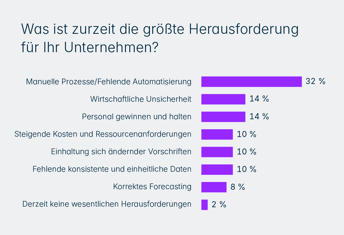 Basierend auf einer Umfrage unter 50 Finanzverantwortlichen auf der Lucanet World 2025 zeigen die Ergebnisse, dass 32 % fehlende Automatisierung als ihre größte operative Herausforderung nennen. Jeder Fünfte (22 %) bezeichnete dies als die oberste Investitionspriorität für die nächsten 12 bis 18 Monate.