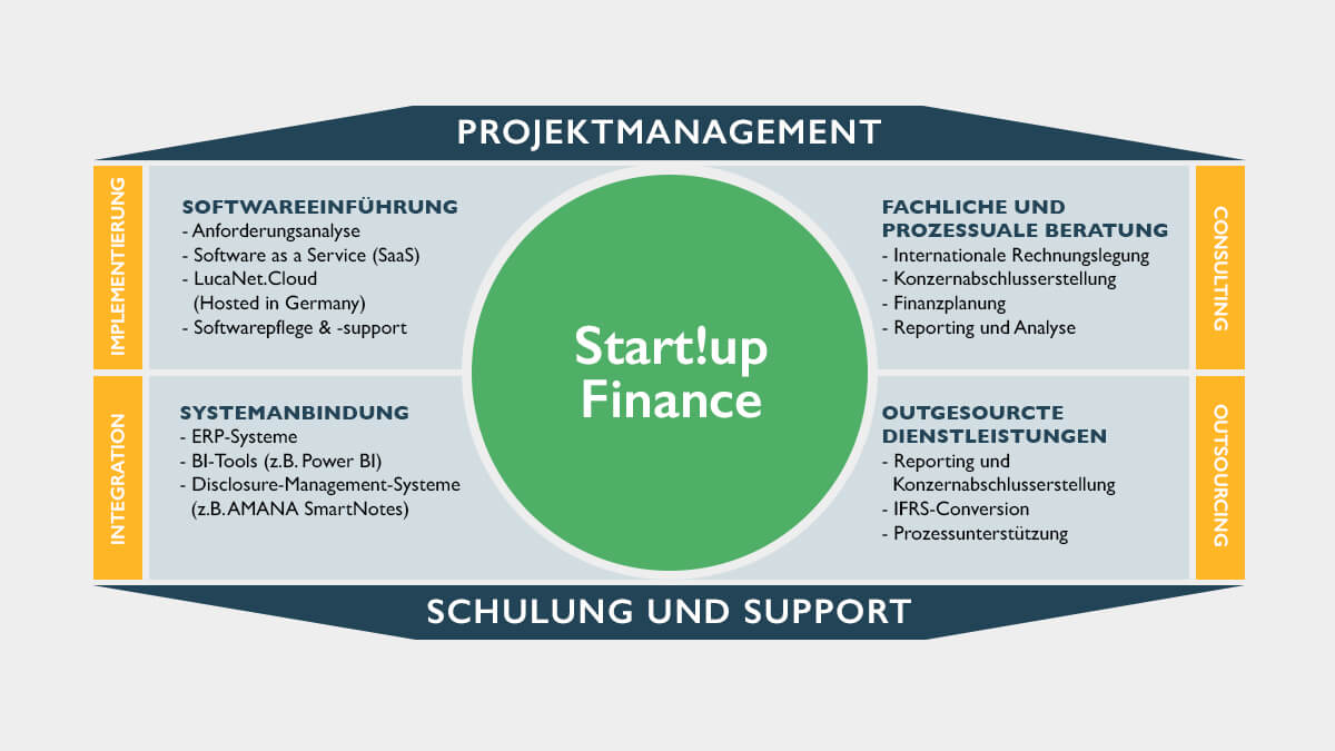 Lucanet ermöglicht Startups den optimalen Einstieg in die Professionalisierung des Financial Reportings sowohl auf Einzelabschluss- vor allem aber auf Konzernebene.