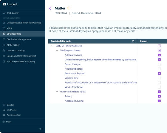 Verbessern Sie Ihre Nachhaltigkeitsaktivitäten mit einer doppelten Wesentlichkeitsanalyse sowohl aus finanzieller als auch aus auswirkungsbezogener Perspektive, die eine umfassende Berichterstattung, größere Transparenz und Rechenschaftspflicht in Ihren ESG-Reporting-Bemühungen gewährleistet.