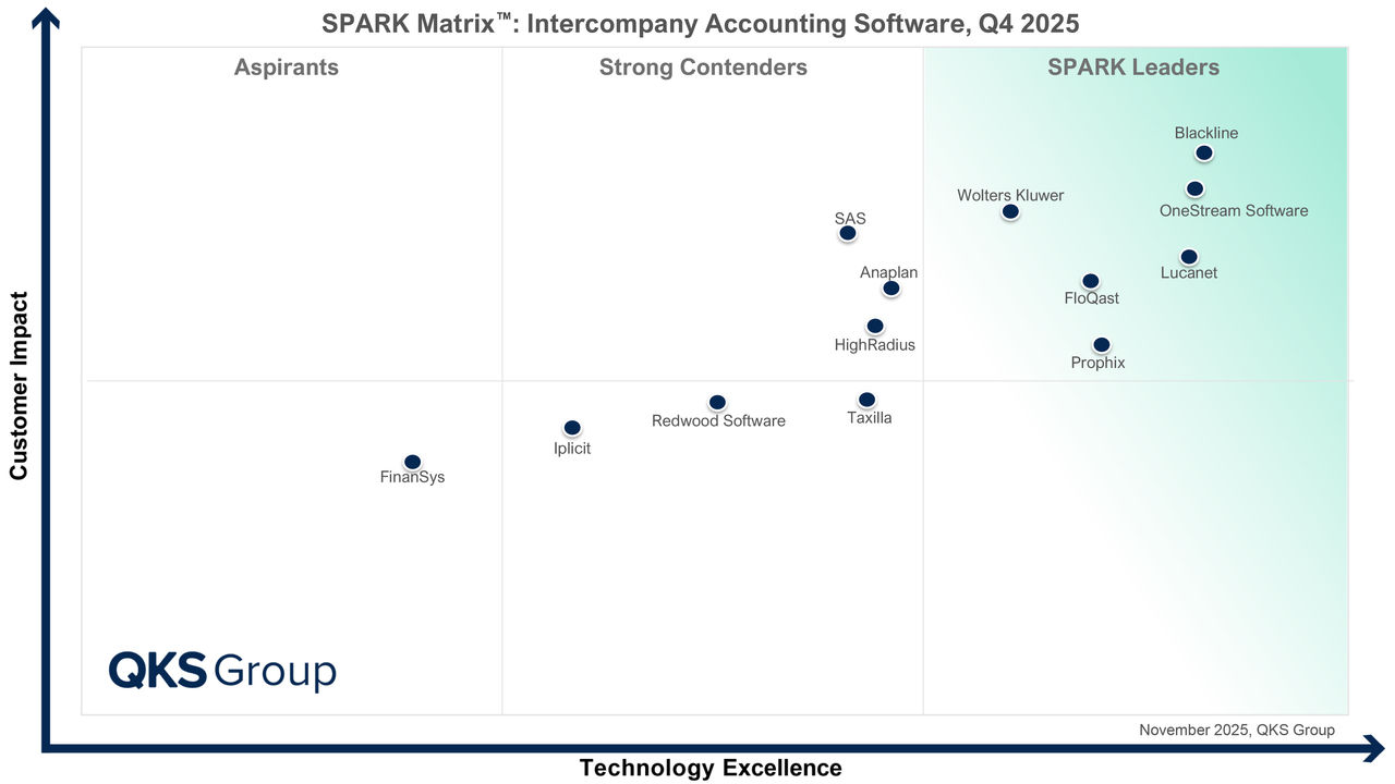 The SPARK Matrix™ Intercompany Accounting Software is an independent evaluation of vendors conducted by the QKS Group, a leading global advisory and research firm. The evaluation combines technology excellence with an assessment of customer impact.