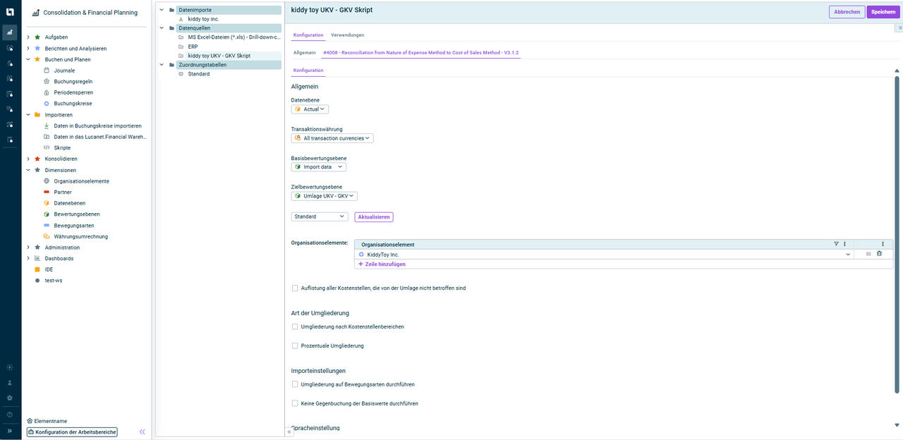 Shortly after July 31, 2023, the first reporting date after the acquisition, you find the following in your email inbox: an Excel file with the file name “KiddyToy Financial Statements July 2023 (Prelim)”. But, surprise! Unfortunately, the file does not quite meet your format requirements. Thanks to Lucanet's flexible import function, your experienced team was able to import the file into Lucanet a short time later.
