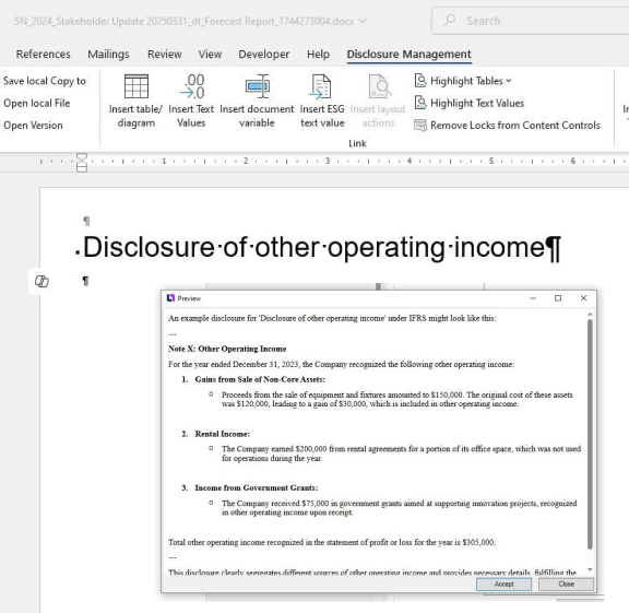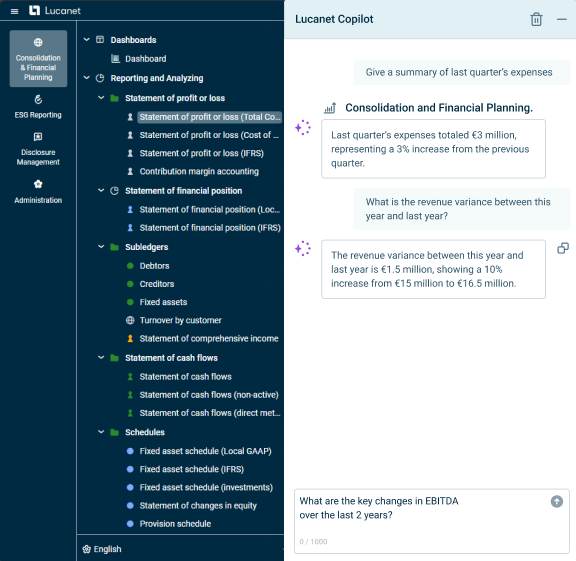 Use Copilot to easily write narratives and prepare disclosure reports according to the European Sustainability Reporting Standards (ESRS) and the International Financial Reporting Standards (IFRS).
