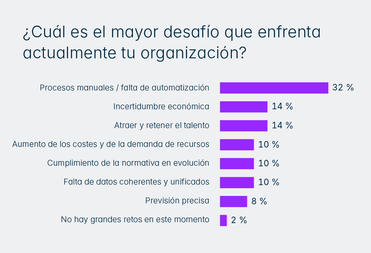 Basándose en una encuesta realizada a 50 profesionales financieros de alto nivel en Lucanet World 2025, los resultados muestran que el 32 % citan la falta de automatización como su principal reto operativo. Uno de cada cinco (22 %) lo identificó como su principal prioridad de inversión en los próximos 12-18 meses.