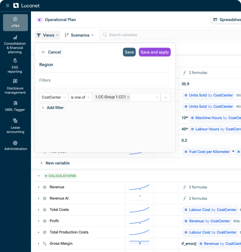 Mejora cómo tu equipo planifica, analiza y adapta las estrategias operativas. Con datos conectados, modelado flexible e IA integrada, Lucanet xP&A le ayuda a tomar decisiones más rápidas y con mayor confianza.