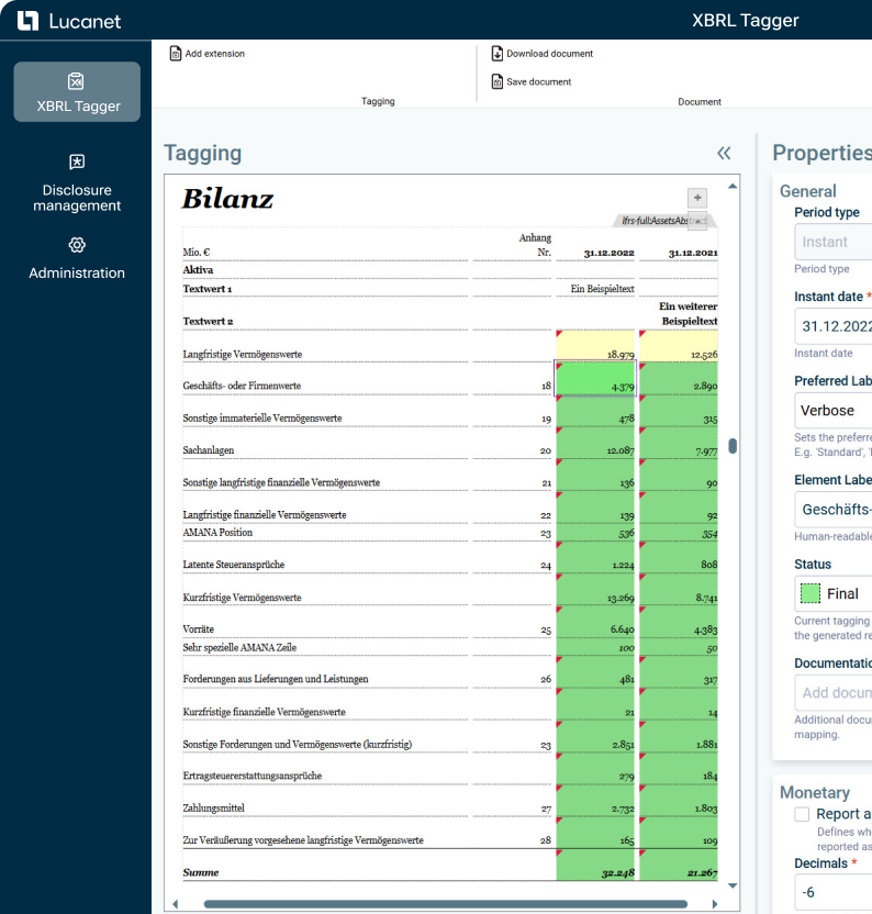 Ahorre tiempo y recursos y reasigne equipos a proyectos estratégicos gracias a las herramientas de etiquetado eficientes y los flujos de trabajo automatizados de XBRL de Lucanet.