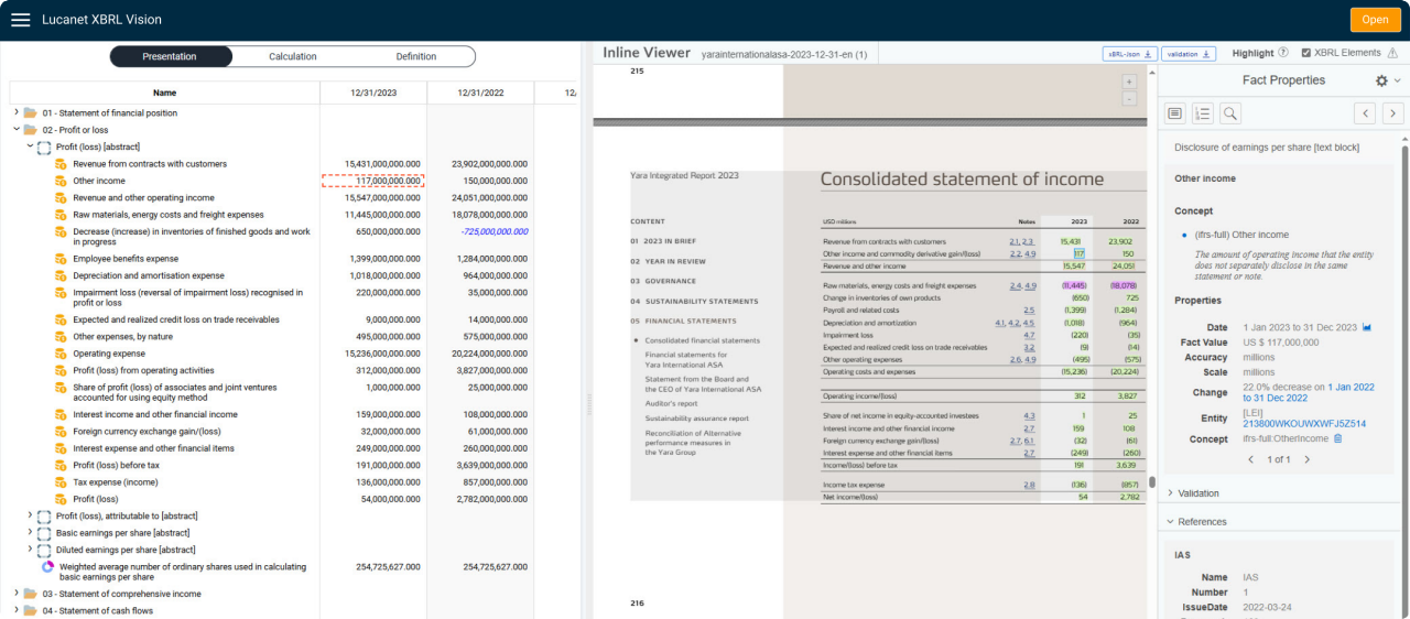 Valida los informes XBRL sin esfuerzo con Lucanet XBRL Vision. Los equipos de finanzas pueden acceder, ver, buscar y validar rápidamente los datos y metadatos en una interfaz estandarizada basada en la web para facilitar la revisión y la validación cruzada.