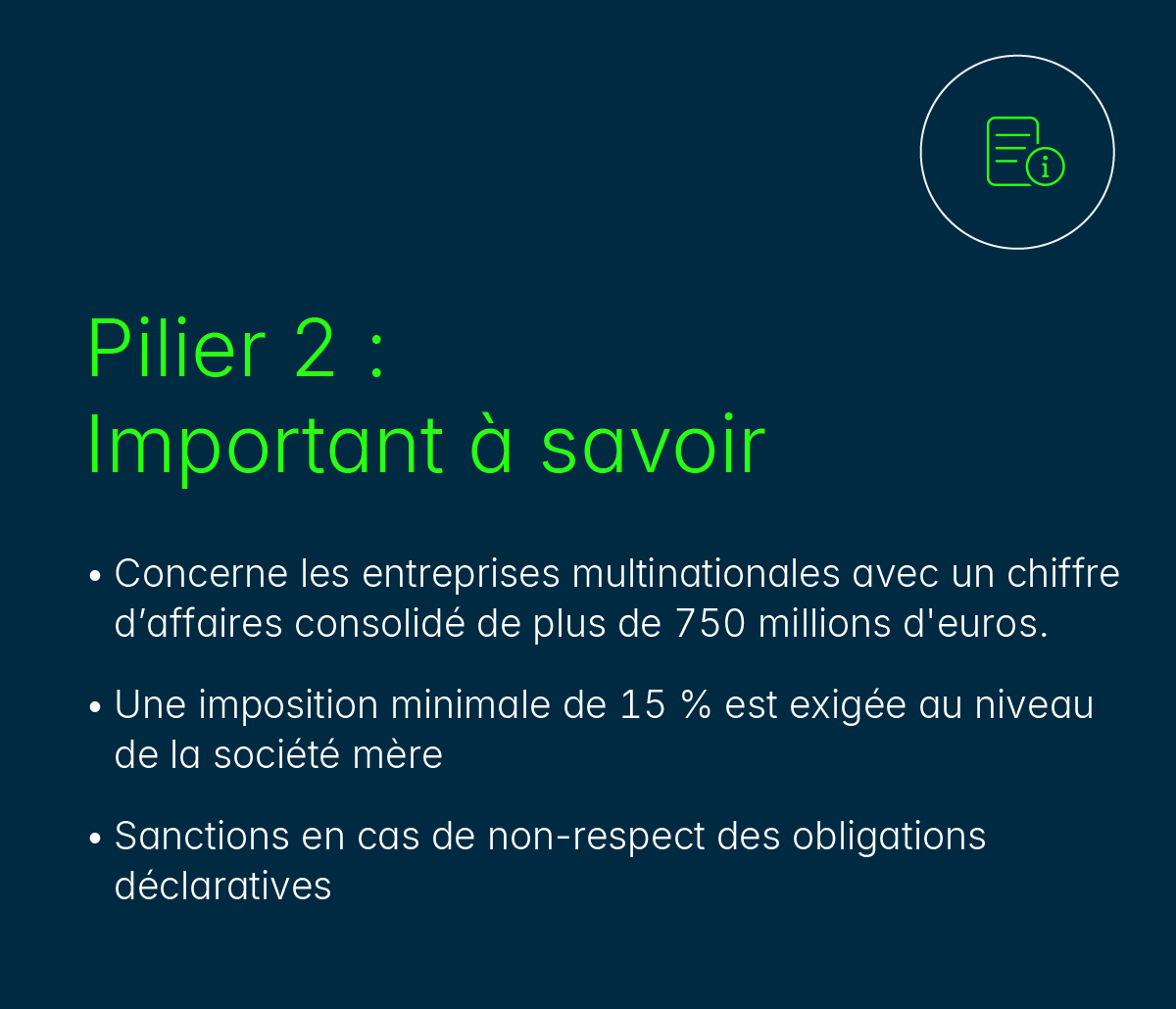 Dès la mi-2026, les entreprises devront soumettre leurs premiers rapports d’impôt minimum aux autorités fiscales. Elles devront produire un rapport au format XML et le transmettre à l’administration fiscale de la société mère ou déposer les déclarations locales auprès des autorités compétentes.