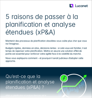 Éliminez les silos et unifiez la planification financière et opérationnelle avec Extended Planning & Analysis (xP&A) de Lucanet. Obtenez des informations en temps réel, favorisez la collaboration et prenez des décisions plus rapides via une plateforme unique.