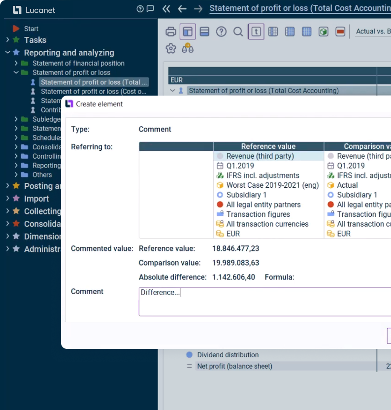 Accédez facilement à n'importe quel nombre d'affichages comparatifs et retracez l'origine de chaque chiffre ou de chaque hypothèse.