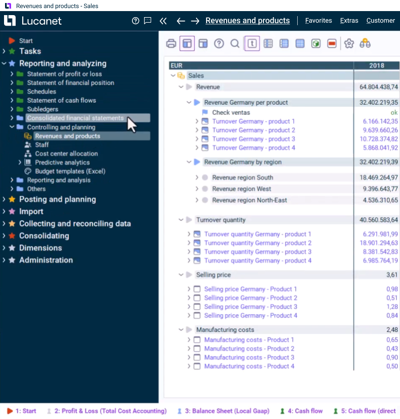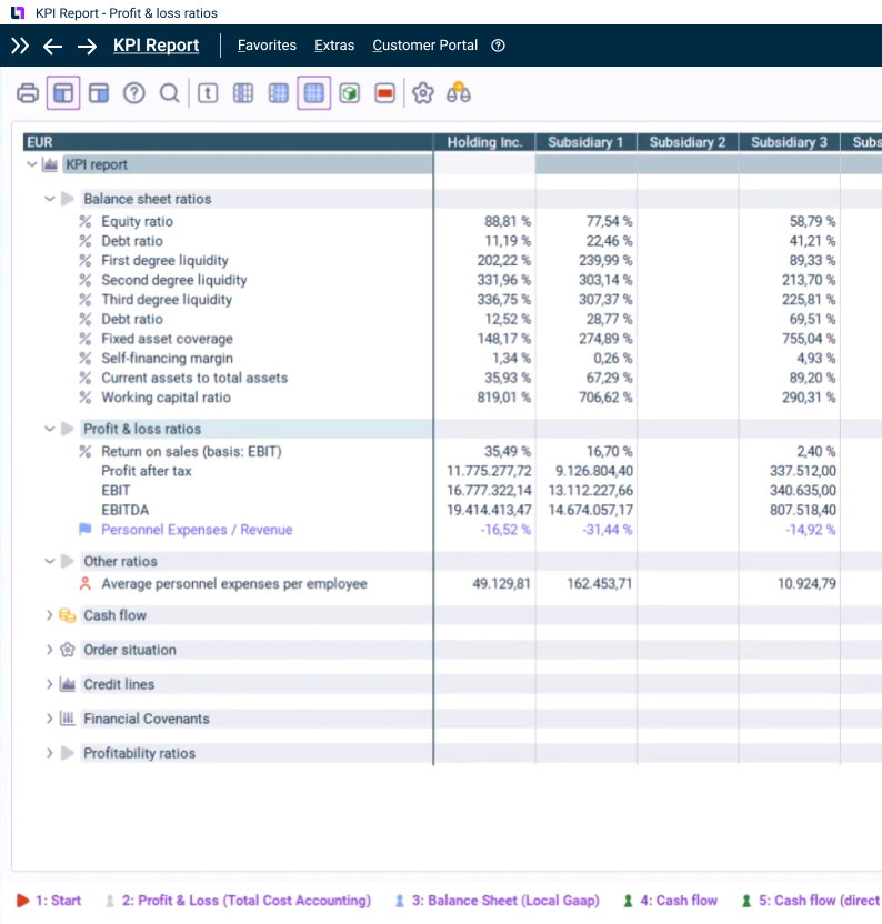 Intégrez les données et structures hétérogènes des entités individuelles du groupe dans des présentations visuelles uniformes. Ceci facilite non seulement l’analyse des données, mais aussi l’analyse comparative au sein de votre portefeuille d'entités du groupe.