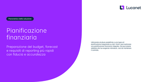 Semplifica la tua pianificazione finanziaria con Lucanet. Automatizza le attività, riduci il lavoro manuale e garantisci l'accuratezza con l'integrazione tra oltre 300 sistemi finanziari. Ottieni previsioni e pianificazione degli scenari in tempo reale in una piattaforma intuitiva basata sul cloud.