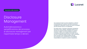 Semplifica il disclosure management con Lucanet. La nostra soluzione centralizza e automatizza la raccolta, la revisione e la presentazione dei dati, garantendo report accurati, conformi e tempestivi su tutti i formati multimediali. Risparmia tempo e denaro con layout coerenti e pronti per la stampa.