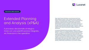 Elimina i silos e integra la pianificazione finanziaria e operativa con Extended Planning & Analysis (xP&A) di Lucanet. Ottieni informazioni dettagliate in tempo reale, semplifica la collaborazione e prendi decisioni più intelligenti e rapide su un'unica piattaforma.