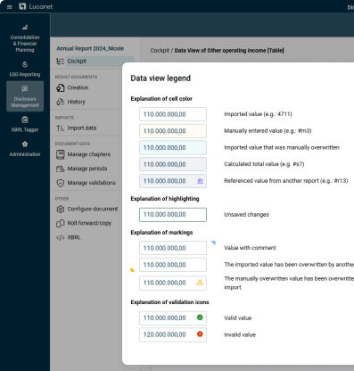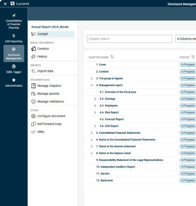 Lucanet Disclosure Management copre l'intero processo di rendicontazione, dall'importazione dei dati ai report pronti per la stampa, personalizzati in base alle tue esigenze.