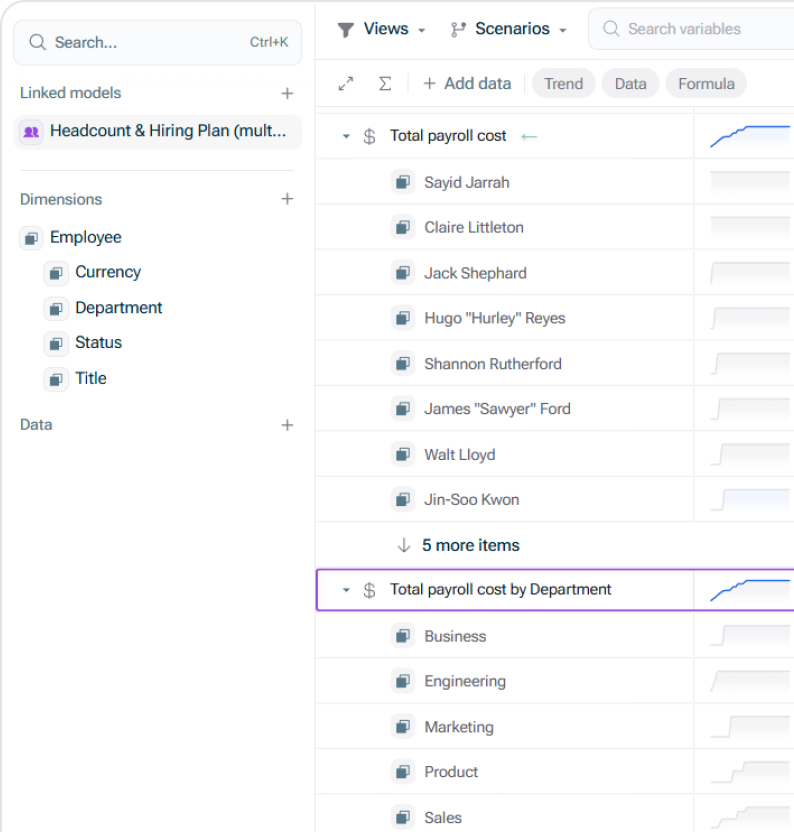 Ottimizza i budget della forza lavoro utilizzando l'analisi automatizzata delle varianze e le simulazioni predittive dei costi.